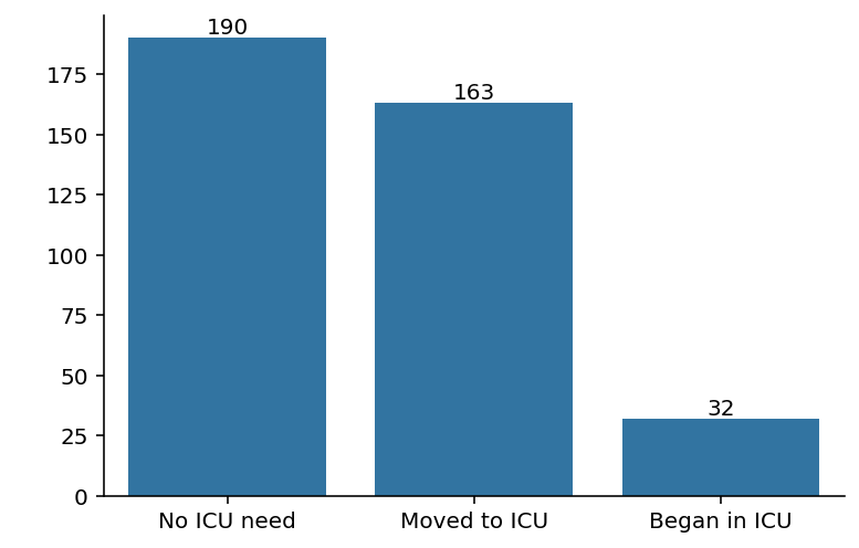 163 people were moved to the ICU and 190 people never needed the ICU.